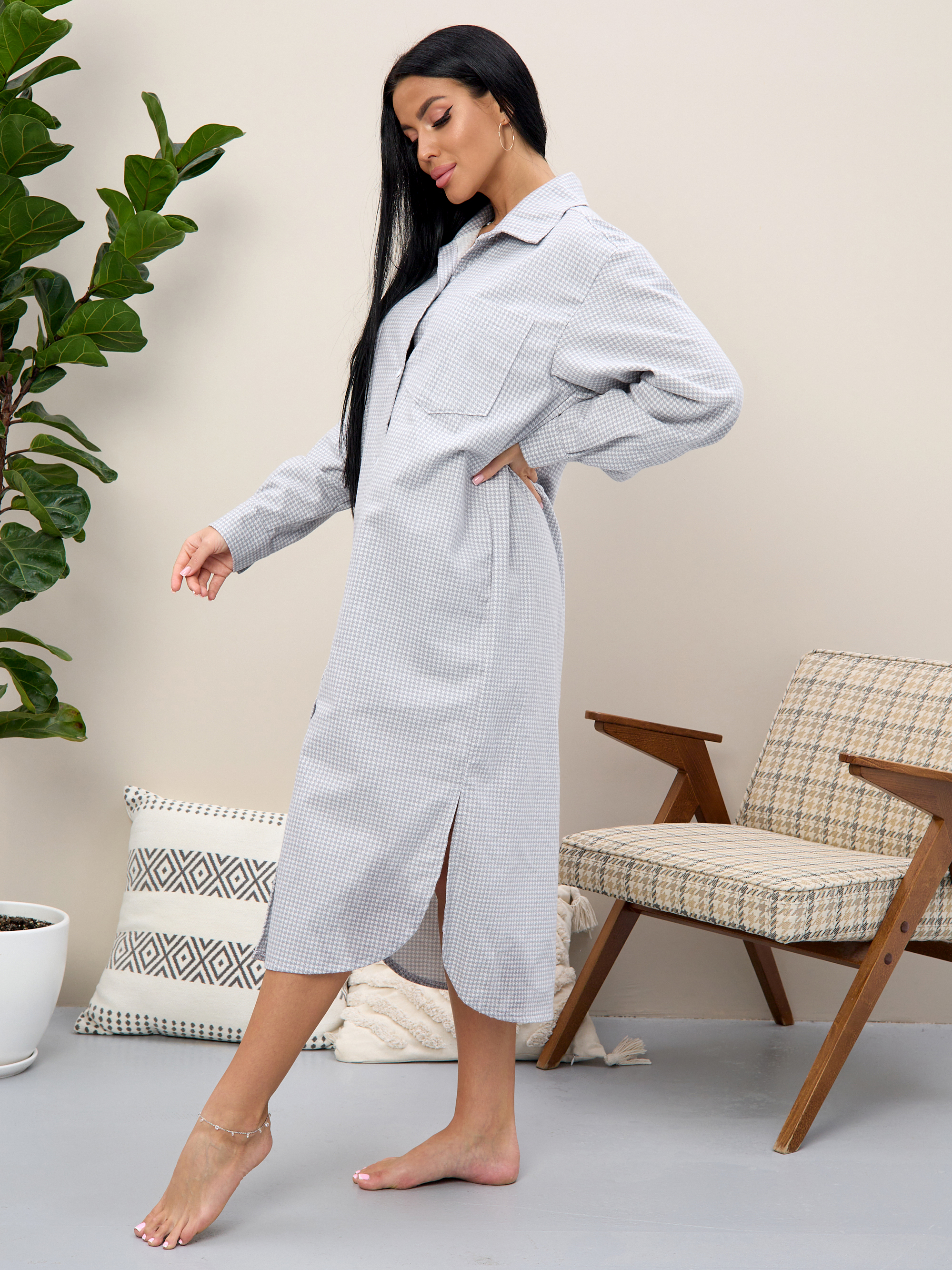 Наш халат не только функционален, но и стильный. Пуговицы и рубашечный тип придают ему модный вид, делая его подходящим как для дома, так и для роддома.